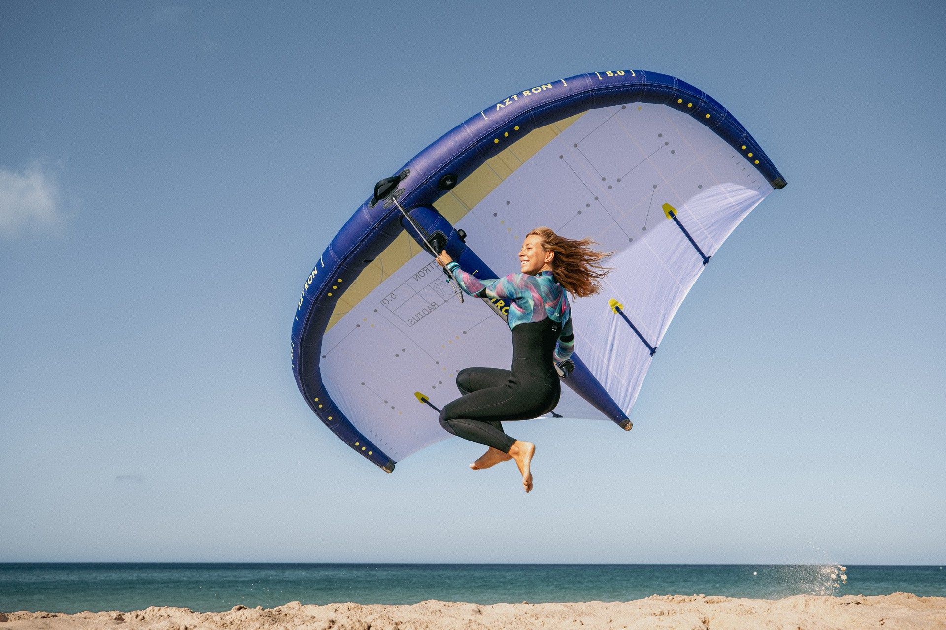 The RADIUS features a compact outline with a low aspect ratio, offering exceptional responsiveness and maneuverability. Its innovative outline, combined with the canopy’s rigidity and light weight, allows for ultra-fast response and rotations. Compared to the previous AIM, the tips are more open, further facilitating quick and precise rotations. The RADIUS delivers outstanding performance for executing and scoring all tricks. Additionally, the leading edge is designed without sharp angles to prevent snagging when the wing touches the water—essential for smooth wave riding landings.